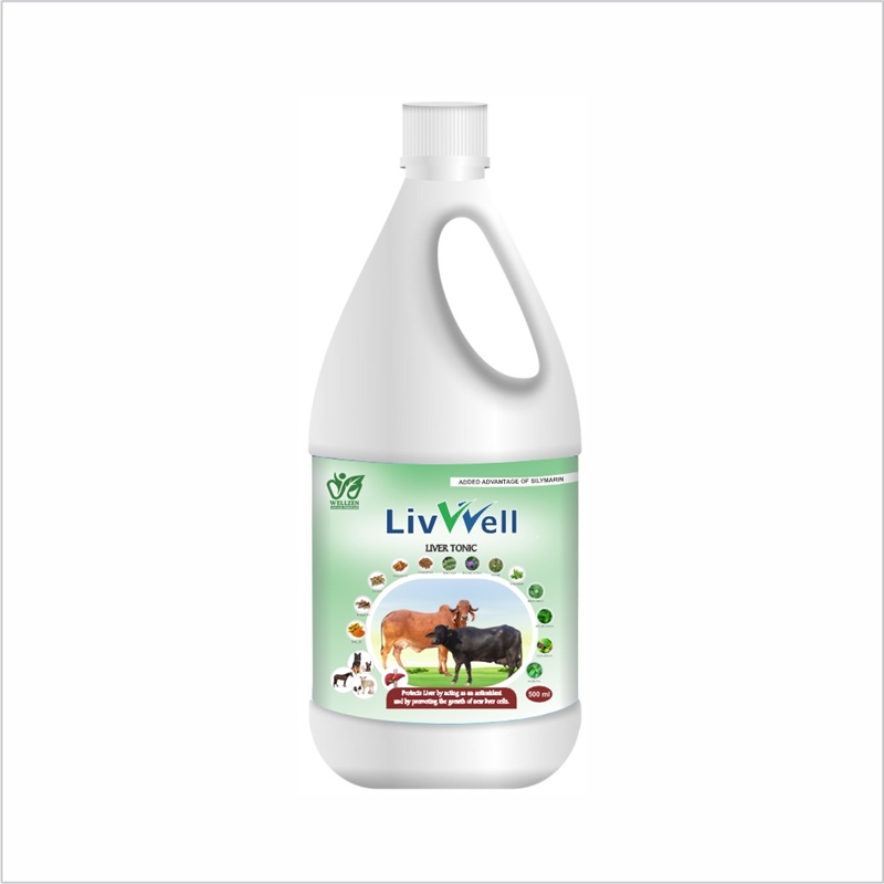 LIVWELL VET Enhances growth, productivity, and efficiency. Improves livability and peak performance & develops body resistance against diseases. Appetite improves FCR, promotes growth, increases milk yield and prevents liver disorders. As a general tonic to use regularly to enhance liver functioning, Improves FCR and weight gain.
